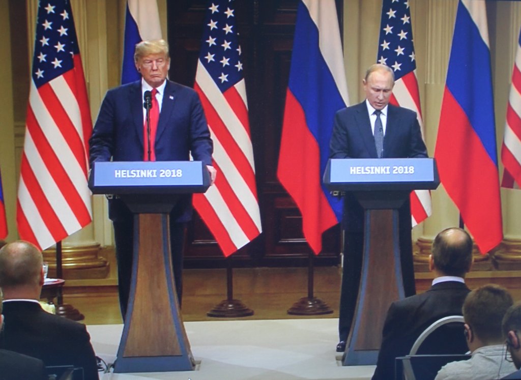 När så Donald Trump hade ett tvåpartsmöte med Putin i Helsinki Finland är 2018, hade Trump ett samtal i enrum med Putin i två timmar. När de kom ut till uppställda TV-kameror, som skulle kabla ut budskapet inför hela världen, meddelar Trump att han har grundligt frågat Putin om det verkligen förekom en aktivitet från rysk sida i USA-valet 2016. Putin hade svarat, att så var det inte. Det köpte Trump! Därmed sågade han sin egen säkerhetstjänst med fotknölarna inför öppen ridå, då Putin och Trump stod sida vid sida och basunerade ut att Putin med ryska hackare ej stört valet. Efter detta besked har Trump med hjälp av sin privata advokat Rudy Giuliani sökt efter spår i Ukraina, som kan peka på att det var Ukraina och inte Ryssland, som intrånget mot USA-valet 2016 kom ifrån. Andra har kallat detta för ren desinformation från Ryssland. Bland andra har sparkade USA-ambassadören för Ukraina Marie Yovanovitch sagt det.